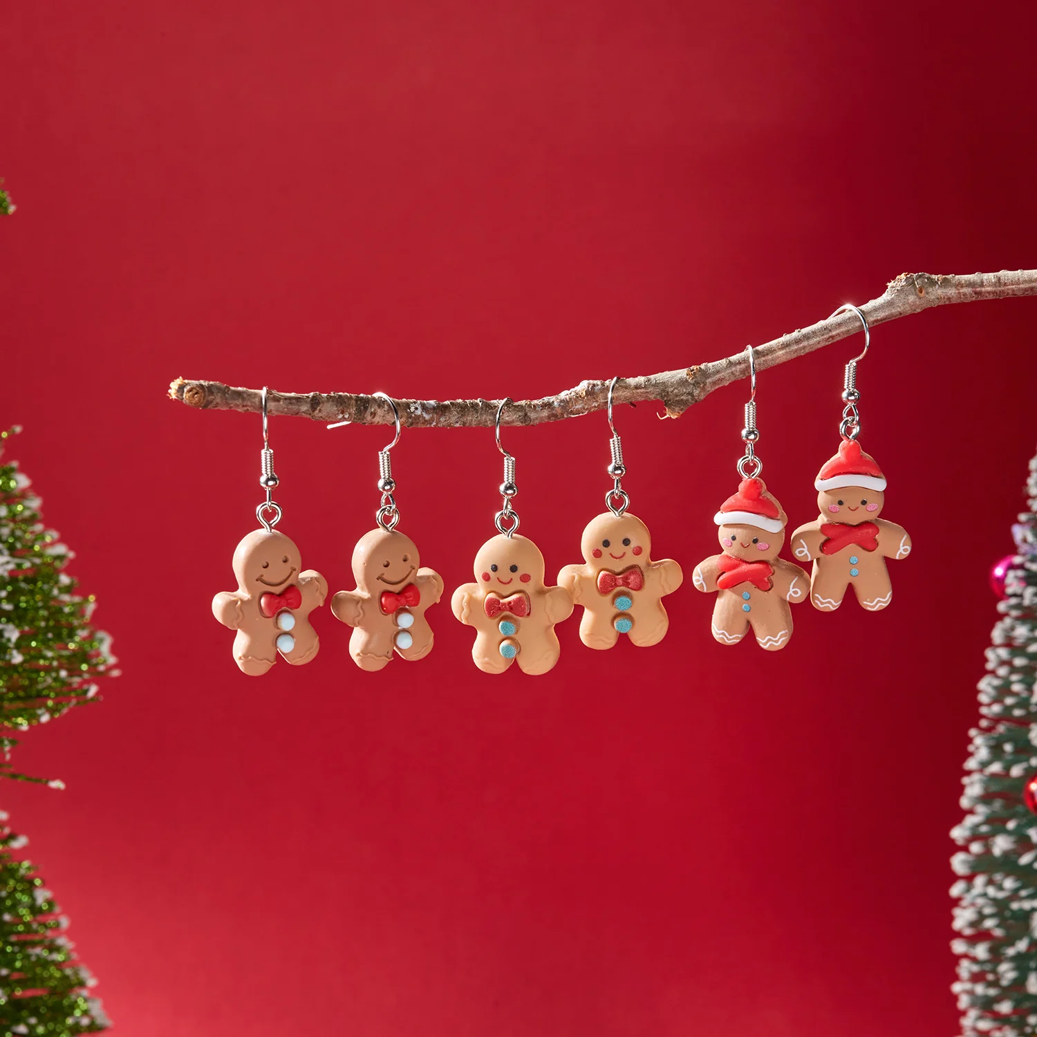 Quality 3 Pairs Cute Christmas Gingerbread Man Dangle Earrings for Women Xmas Cookies Resin Earring Earring Girls Party New Year Jewelry