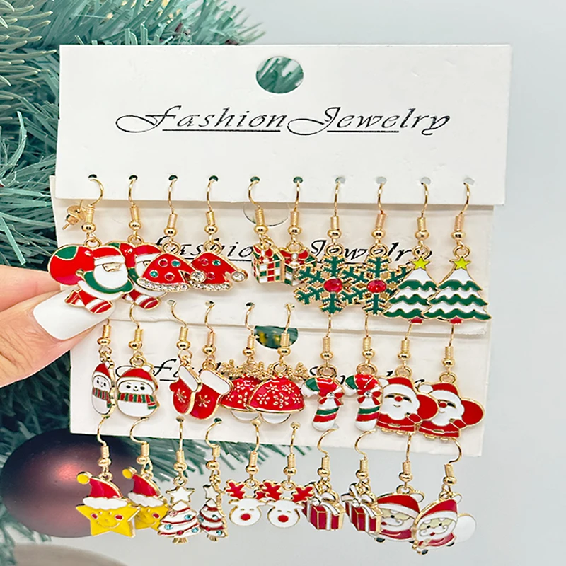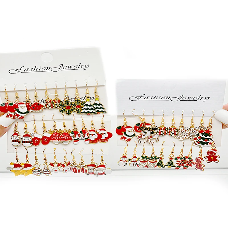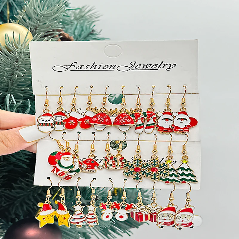 Premium High Clas Christmas Themed 50 pcs Set of Earrings Christmas Themed Earrings Vintage Metal Santa Earrings Designed for Women Fashion