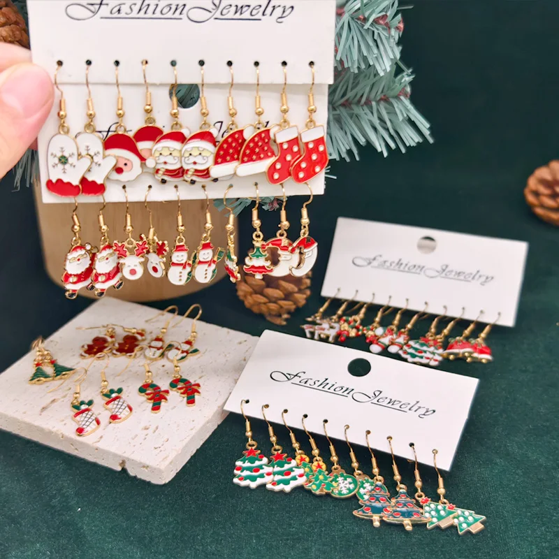 50PCS- Women's Fashion Cartoon Christmas Earrings Set, Christmas Pop Elements, Christmas Earrings, Surprise Gifts