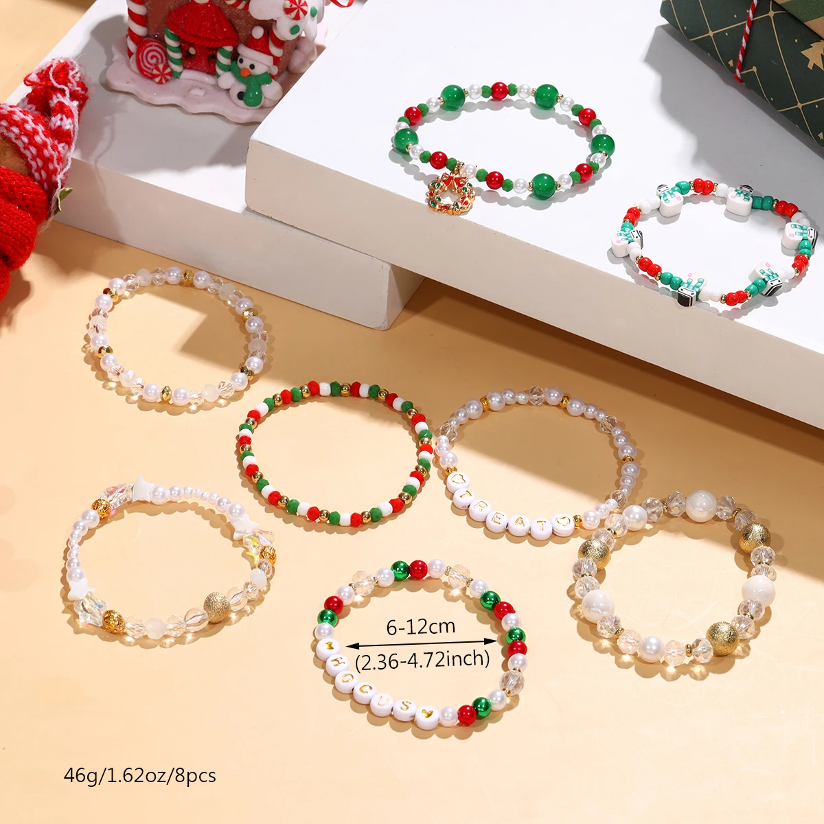 Quality Premium Style 8 Piece New Christmas Star & Snowman Beaded Bracelet Set (color random)