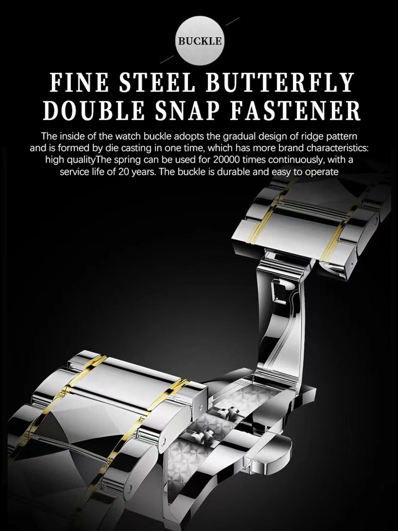 • Stainless Steel Material :Crafted from high-quality stainless steel, this watch is not only stylish but also durable. It's designed to withstand the test of time and maintain its integrity.