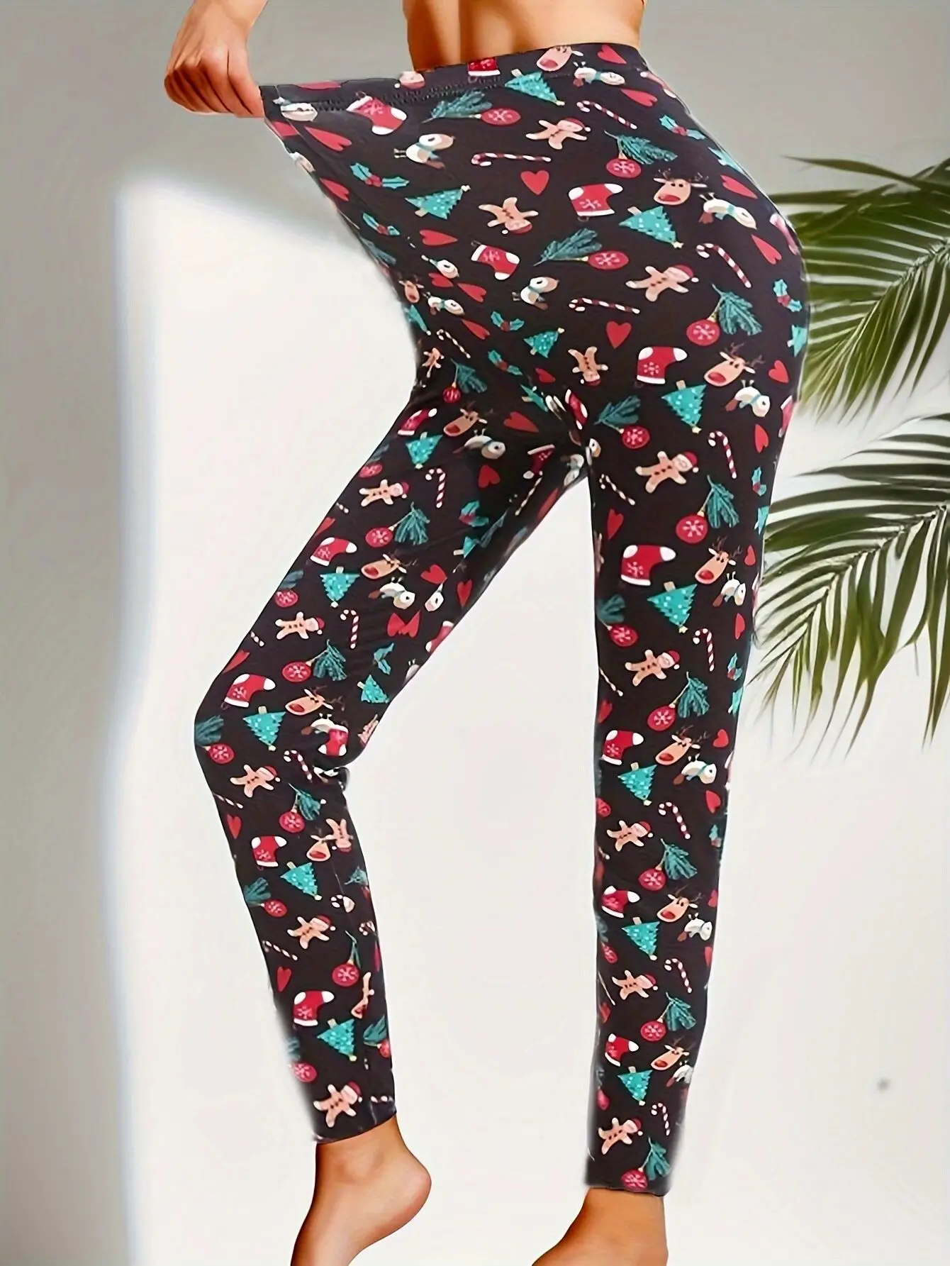 CUHAKCI Christmas 2025 Themed Brushed Fashionable Stretch Sports Leggings Tight Fitting Elegant Sexy Women's Pencil Pants