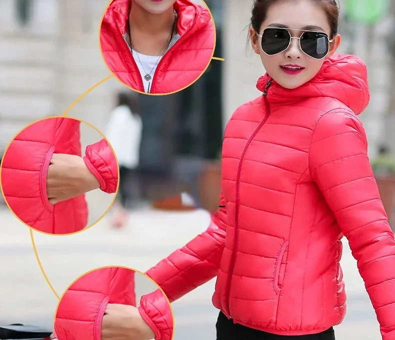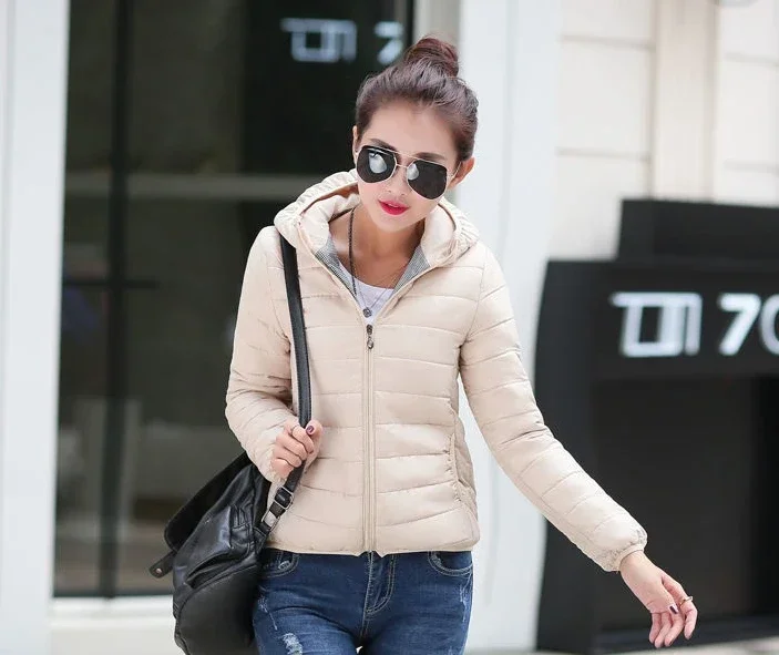Jackets for Women Quilted Padded Lightweight Puffer Woman Coat Hoodie Short Yellow Thick Padding Feather Cropped Cute Modern Hot