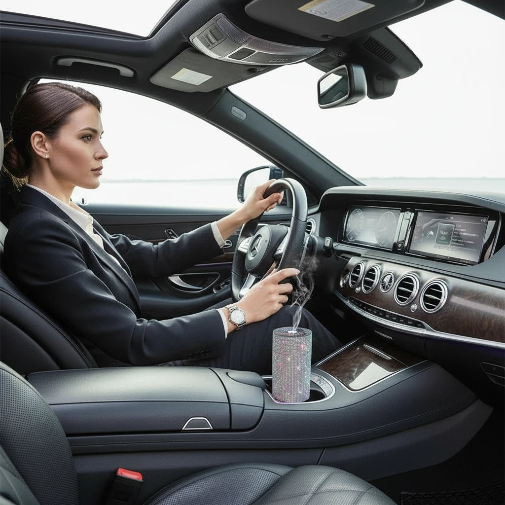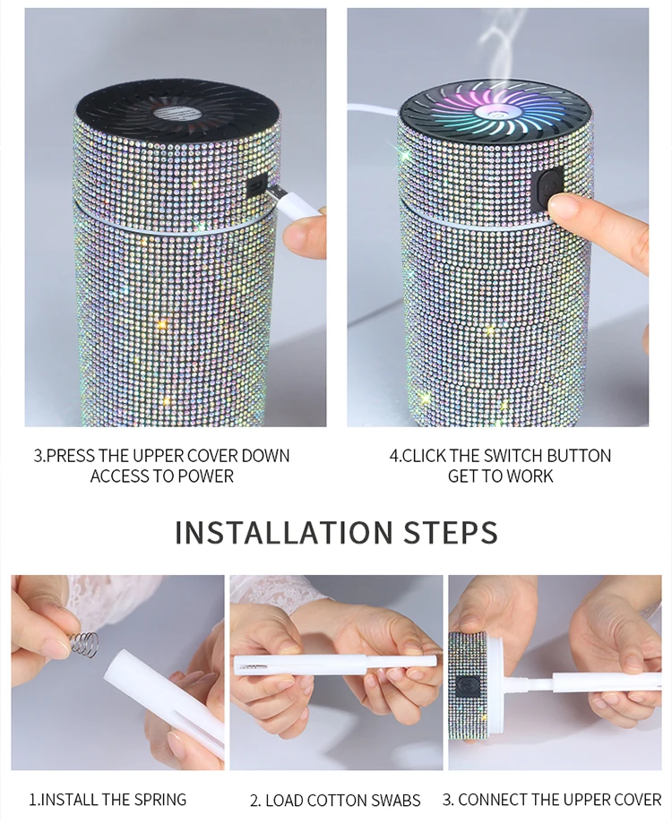 High Quality 2026 Edition Luxury Shiny Car Diffuser Humidifier with LED Light Diamond Auto Air Purifier Diffuser Air Freshener Bling Car Accessories
