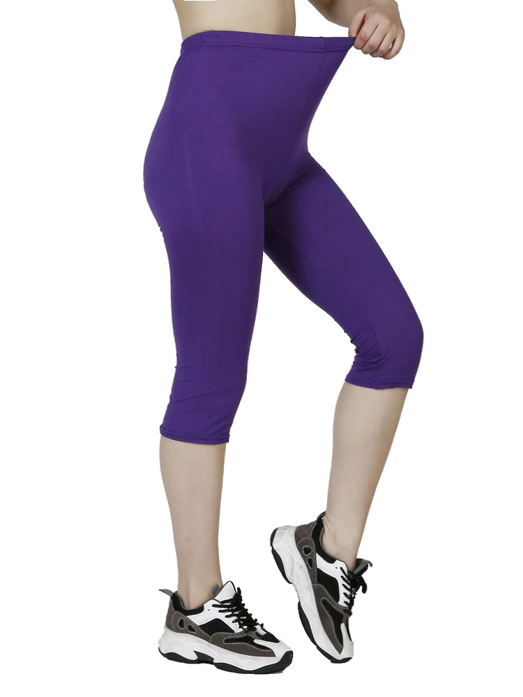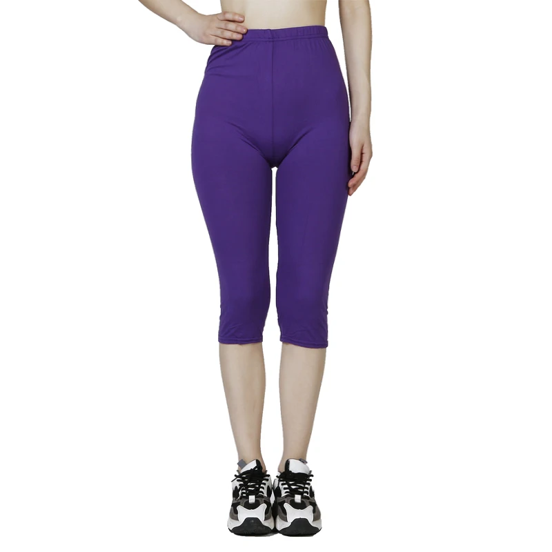 Premium Quality 2026 Winter Style QR63 Solid Color Capris Leggings, WOMEN'S Fashionable Elastic Waist Exercise, Short Leg Pants