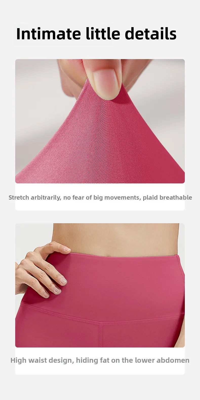 (Soft and skin friendly fabric) made of a blend of polyester and spandex. Once you wear them, you will definitely fall in love with them. The ultra soft fabric is not only pleasing, but also super lightweight, moisture wicking, not only reducing annoying sweat stains, but also preventing leggings from getting wet. Experience the perfect combination of softness and skin friendliness