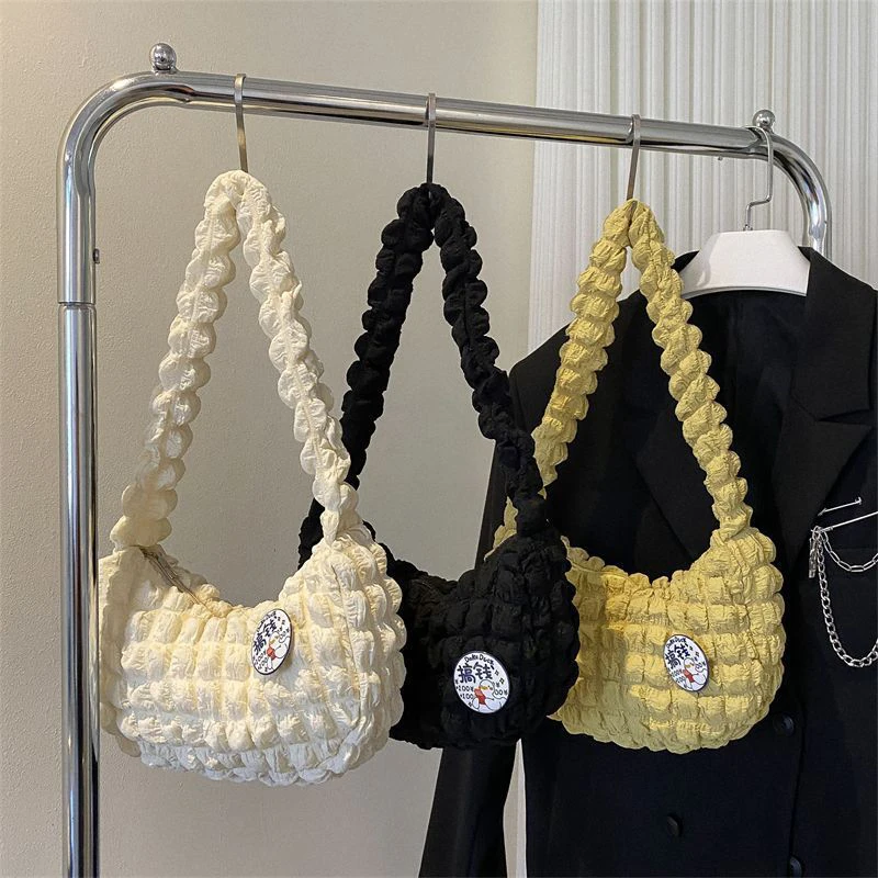 Premium Soft Cloud Bubbles Handbags For Woman Girls Pleated Cloud Underarm Bag Pouch Bag Casual Shoulder Bag Women Cute Purse