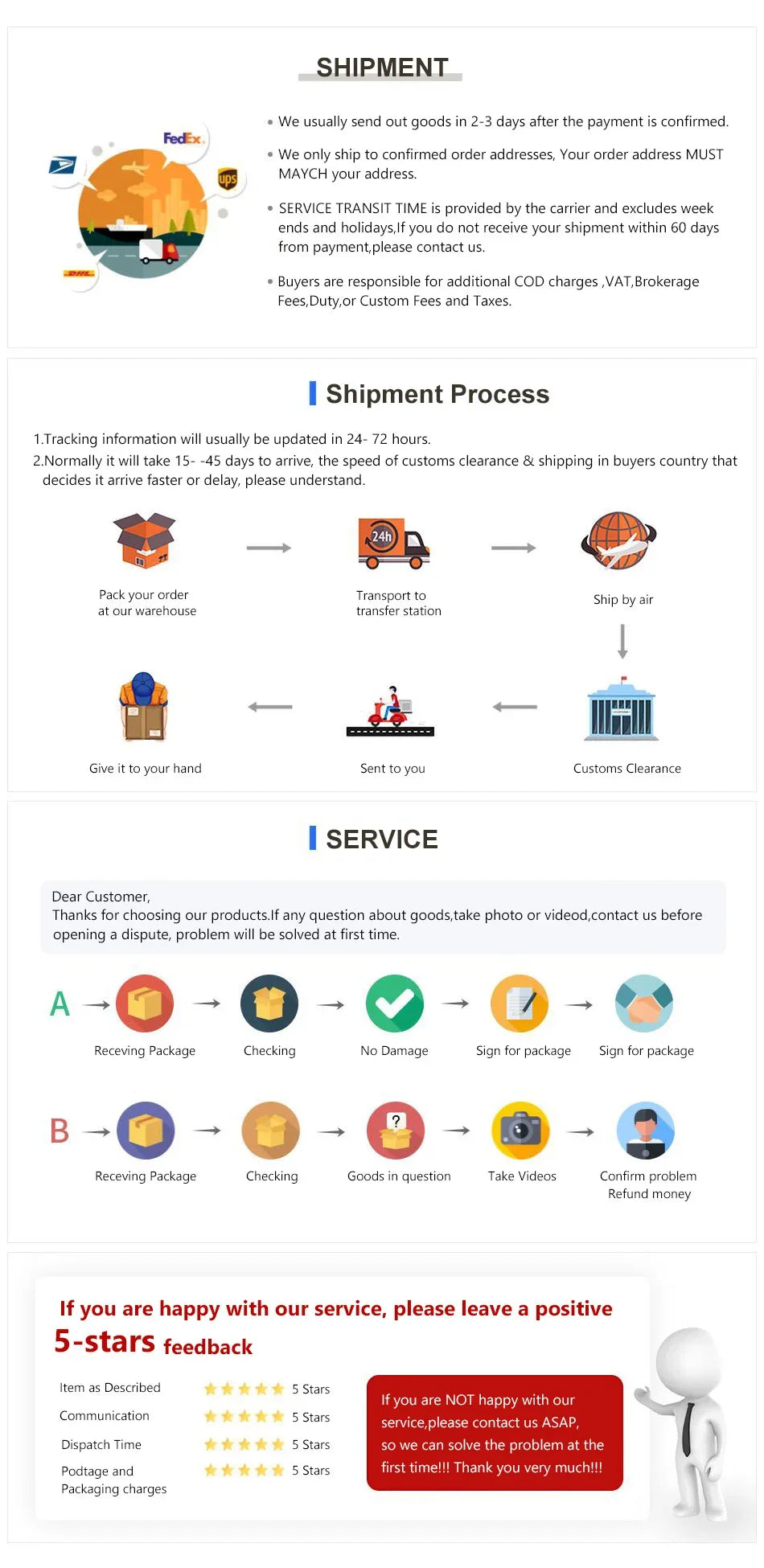 3. Please don't hesitate to contact us if you have any questions or concerns before or after your purchase. We are committed to your 100% satisfaction.